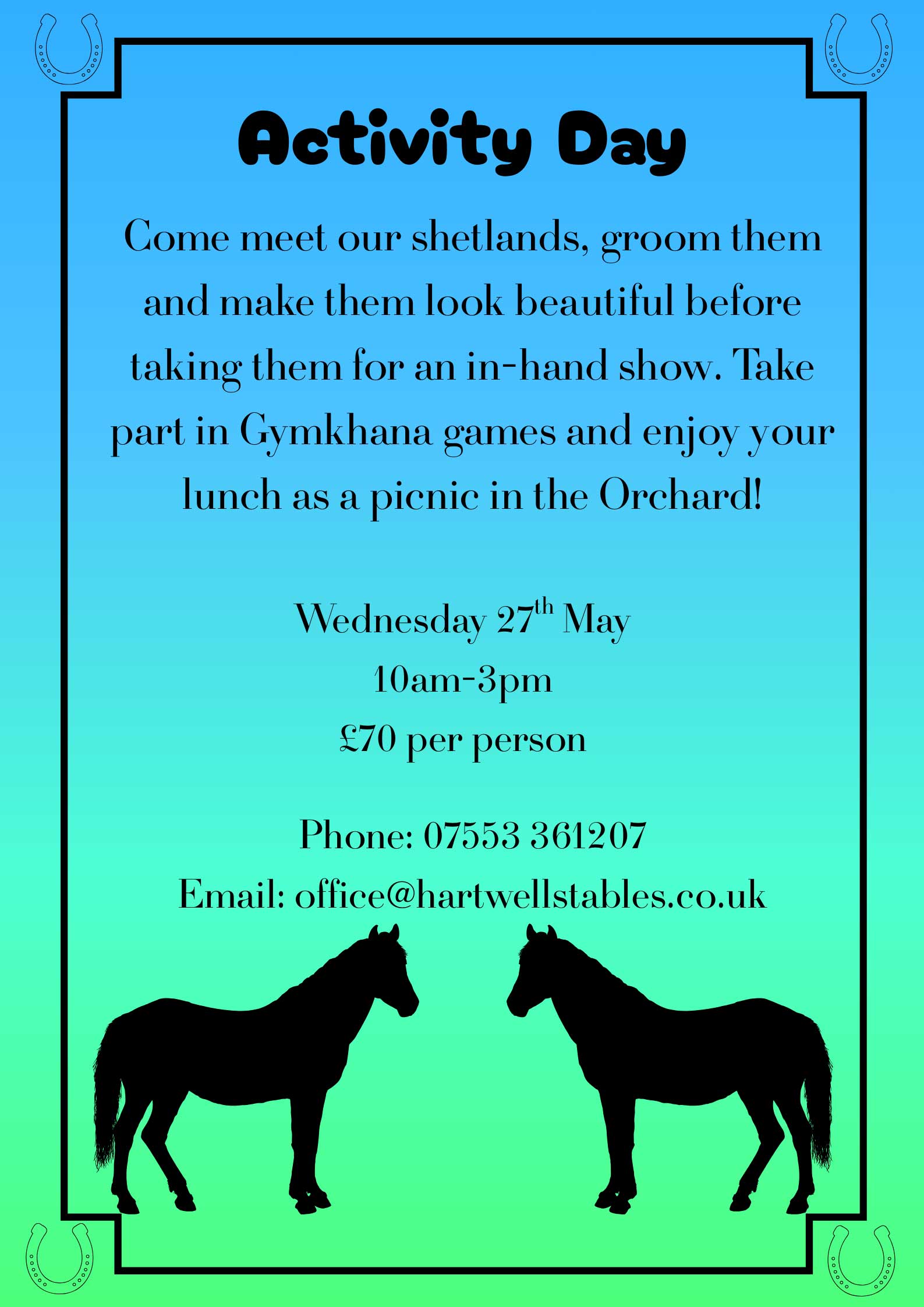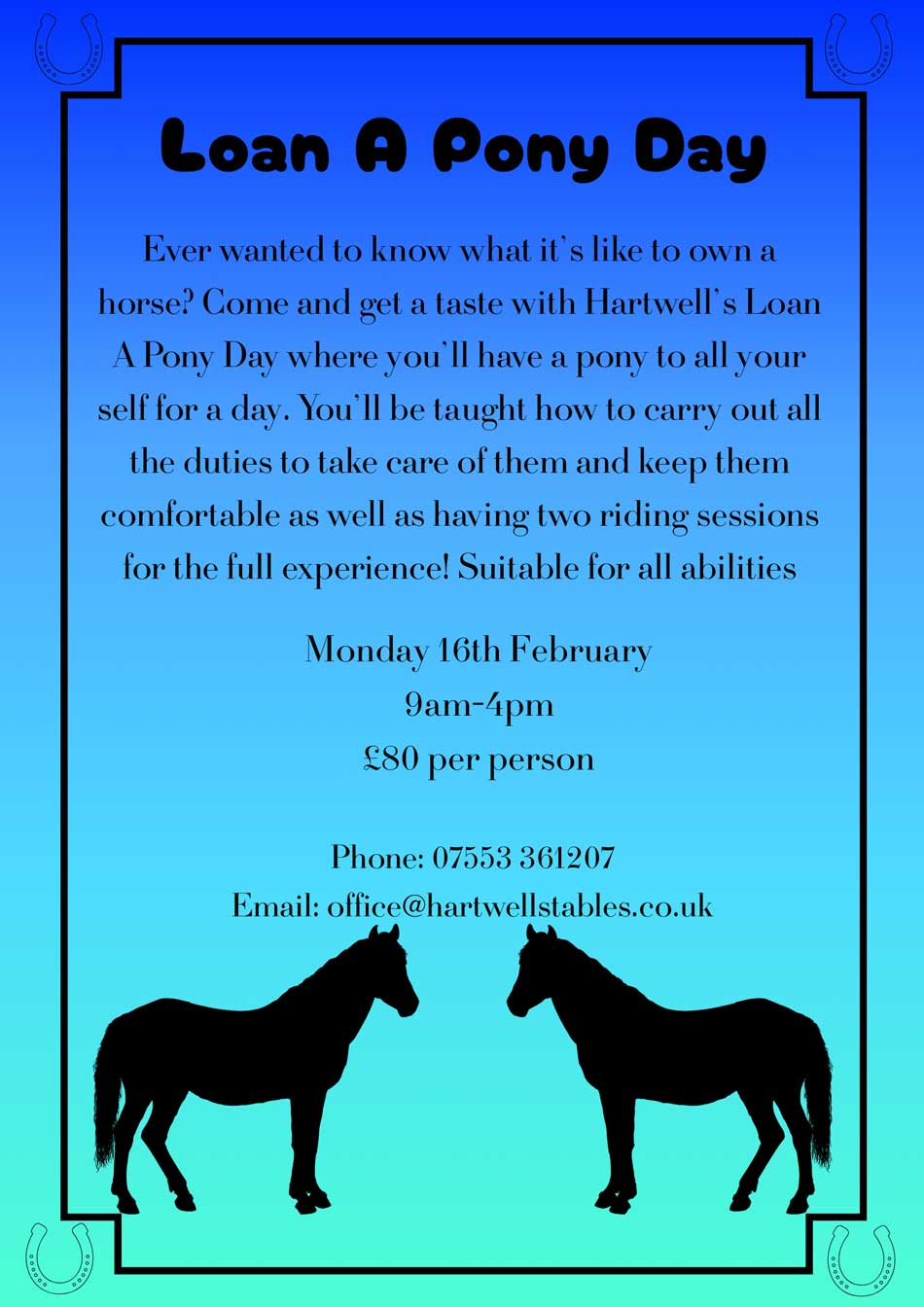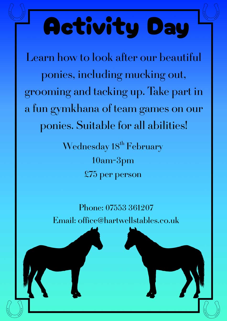 We have a range of exciting and fun activities for all ages coming up at Hartwell Stables.