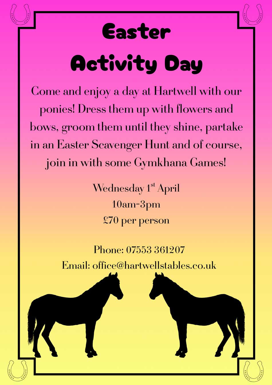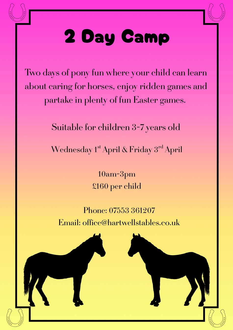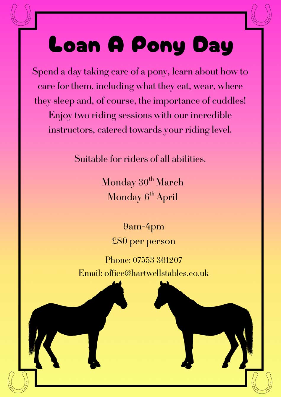We have a range of exciting and fun activities for all ages coming up at Hartwell Stables.